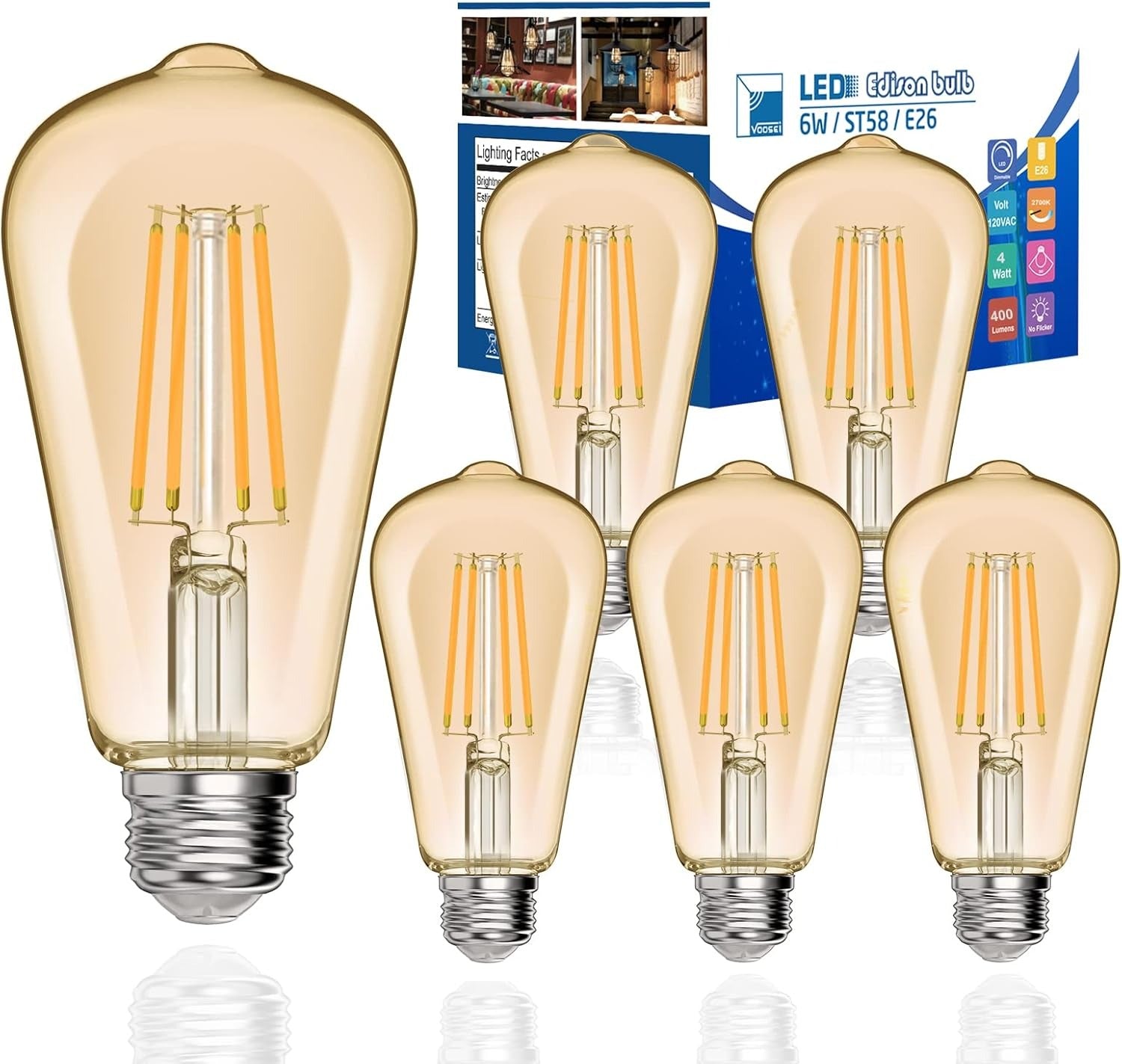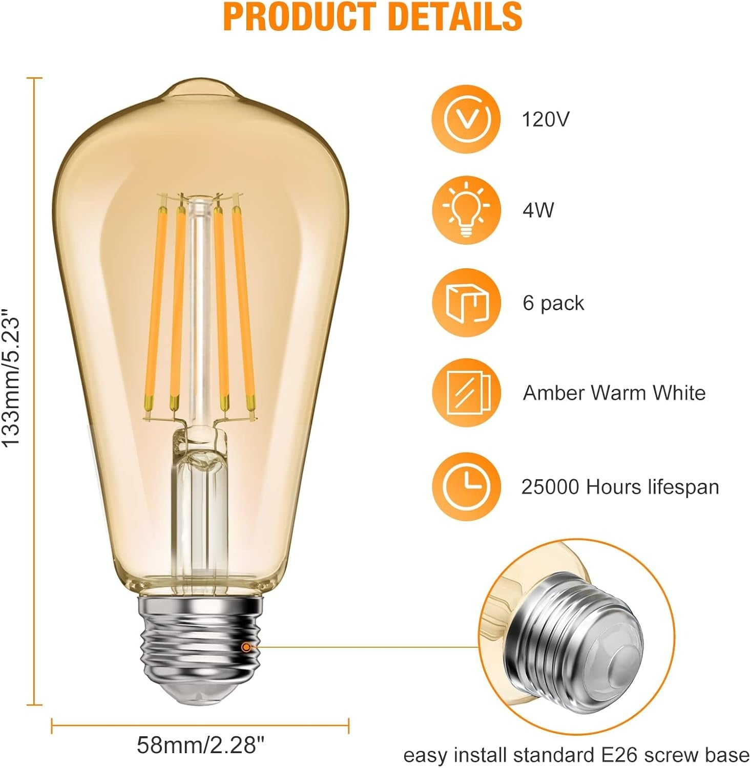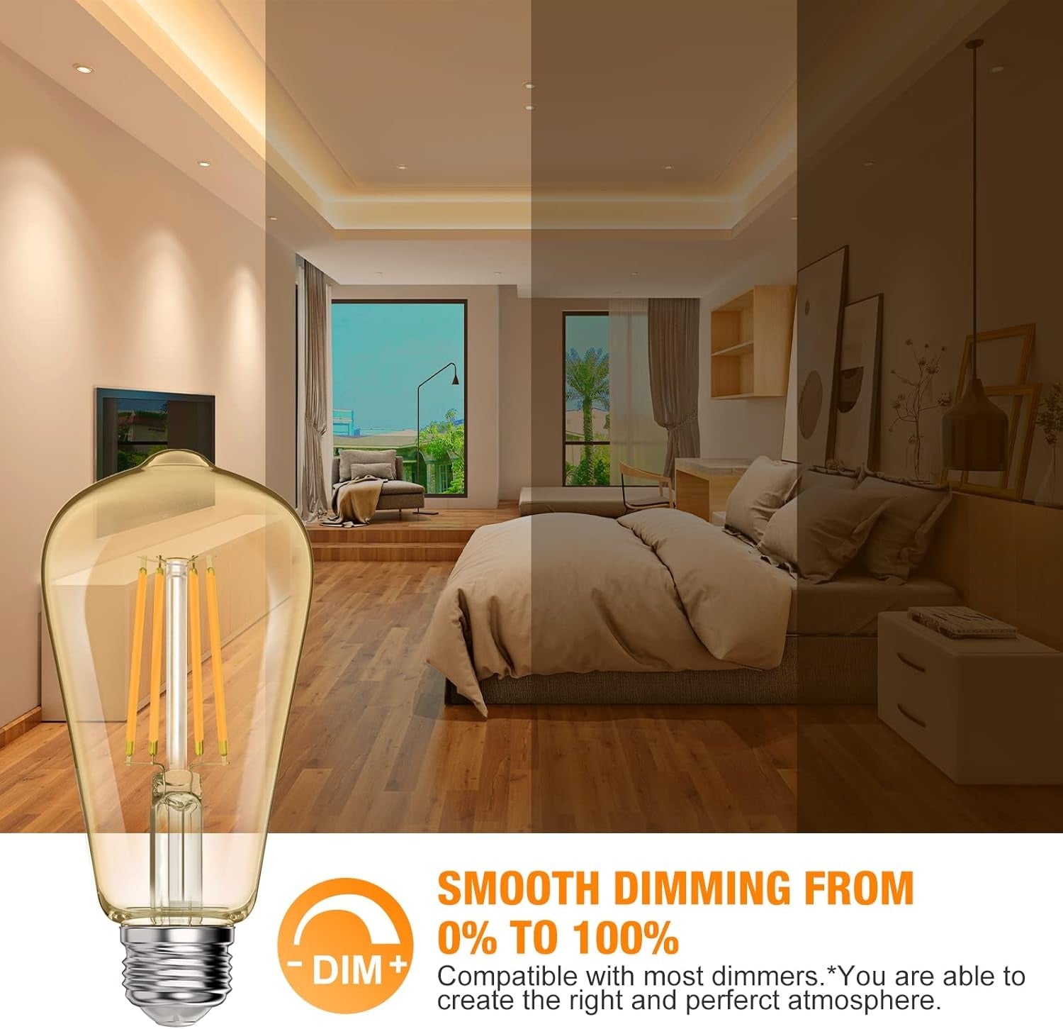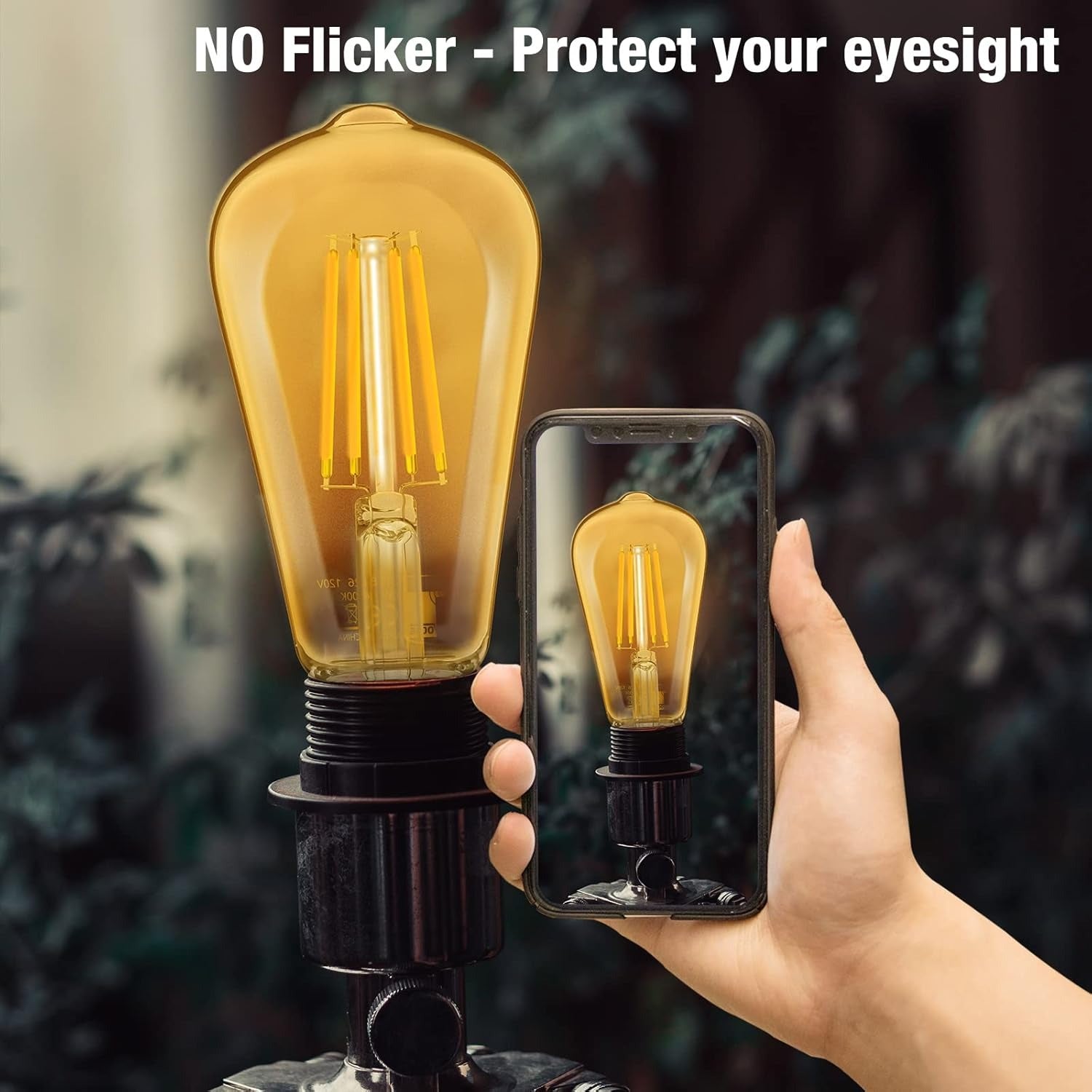 Bec LED Filament Clasic ST64 E27 6.5W 2200K Auriu – Design Retro și Lumină de Calitate Premium pentru Spații Rafinate