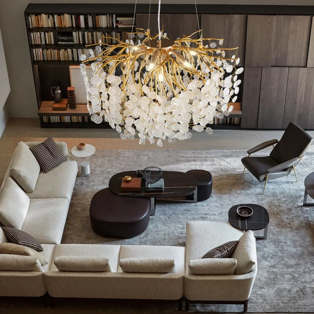 Candelabru Elegant cu Cristale și 6 Surse de Iluminat, Design Auriu – DM9103/800 – Ideal pentru Living sau Sufragerie Elegantă.