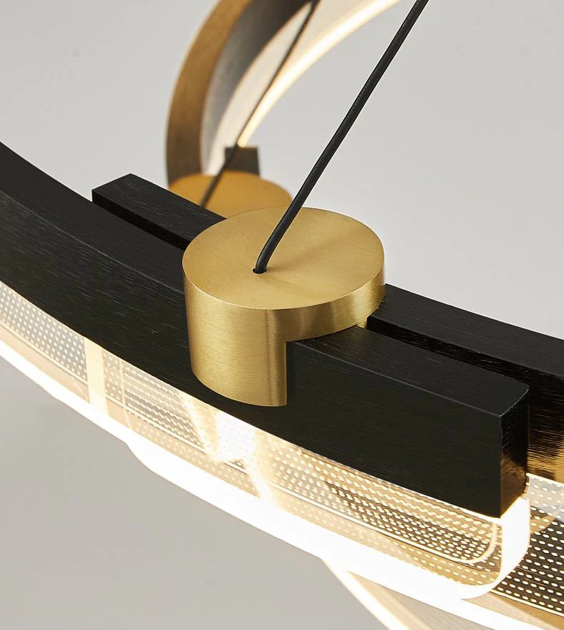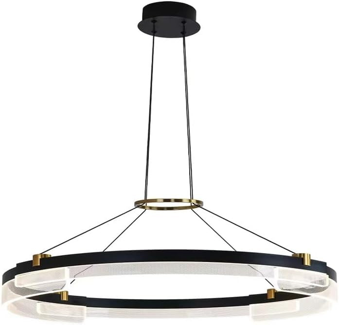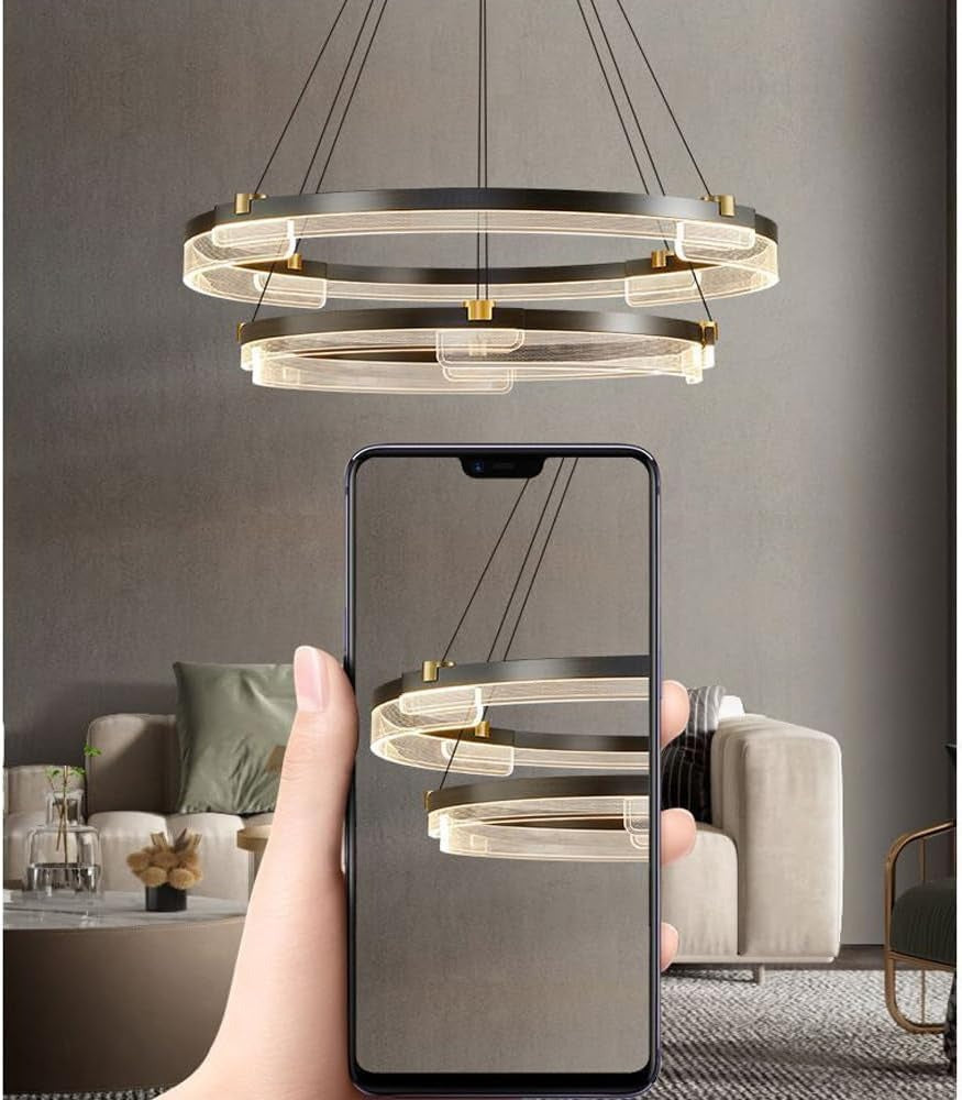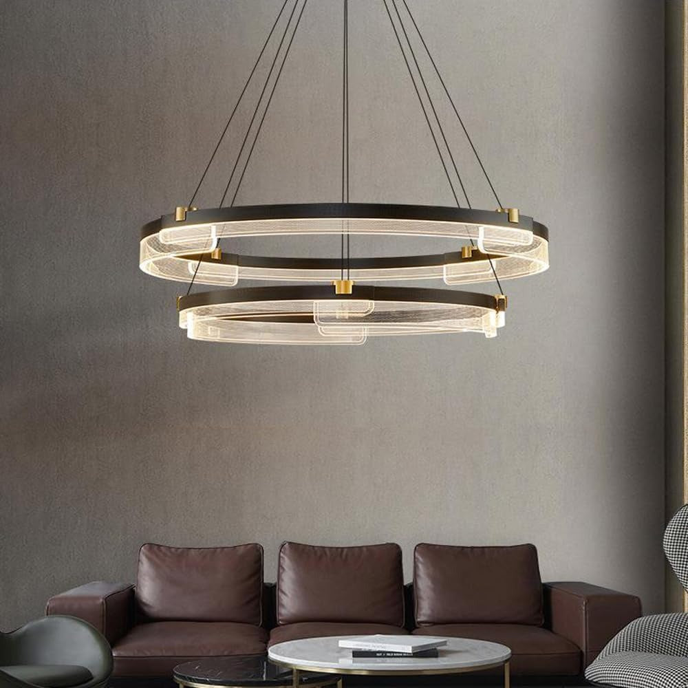 Lustră LED Dublă Inelară Premium DM6600-2 Negru – Design Auriu Și Iluminat Rafinant, Ideală Pentru Camere Stilate