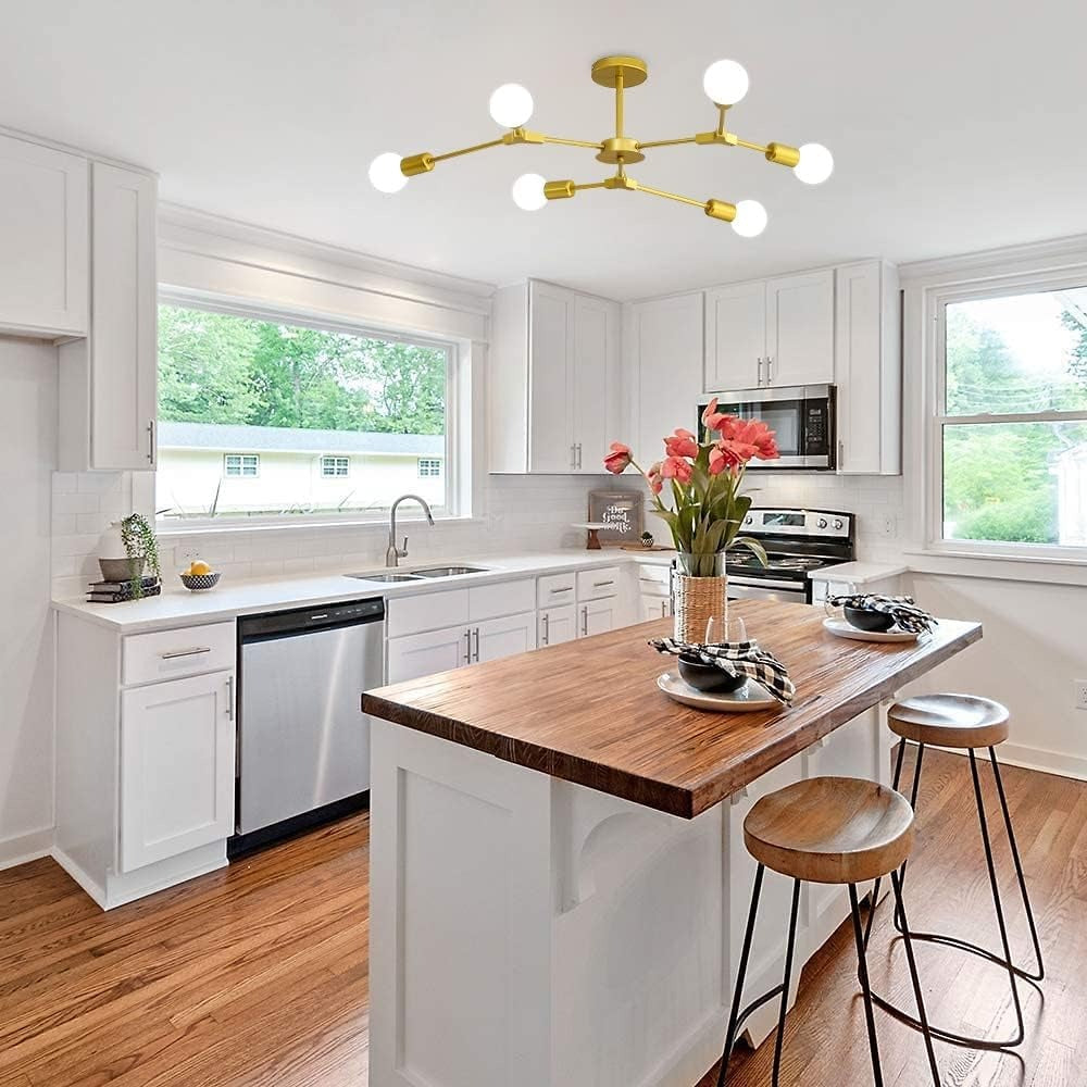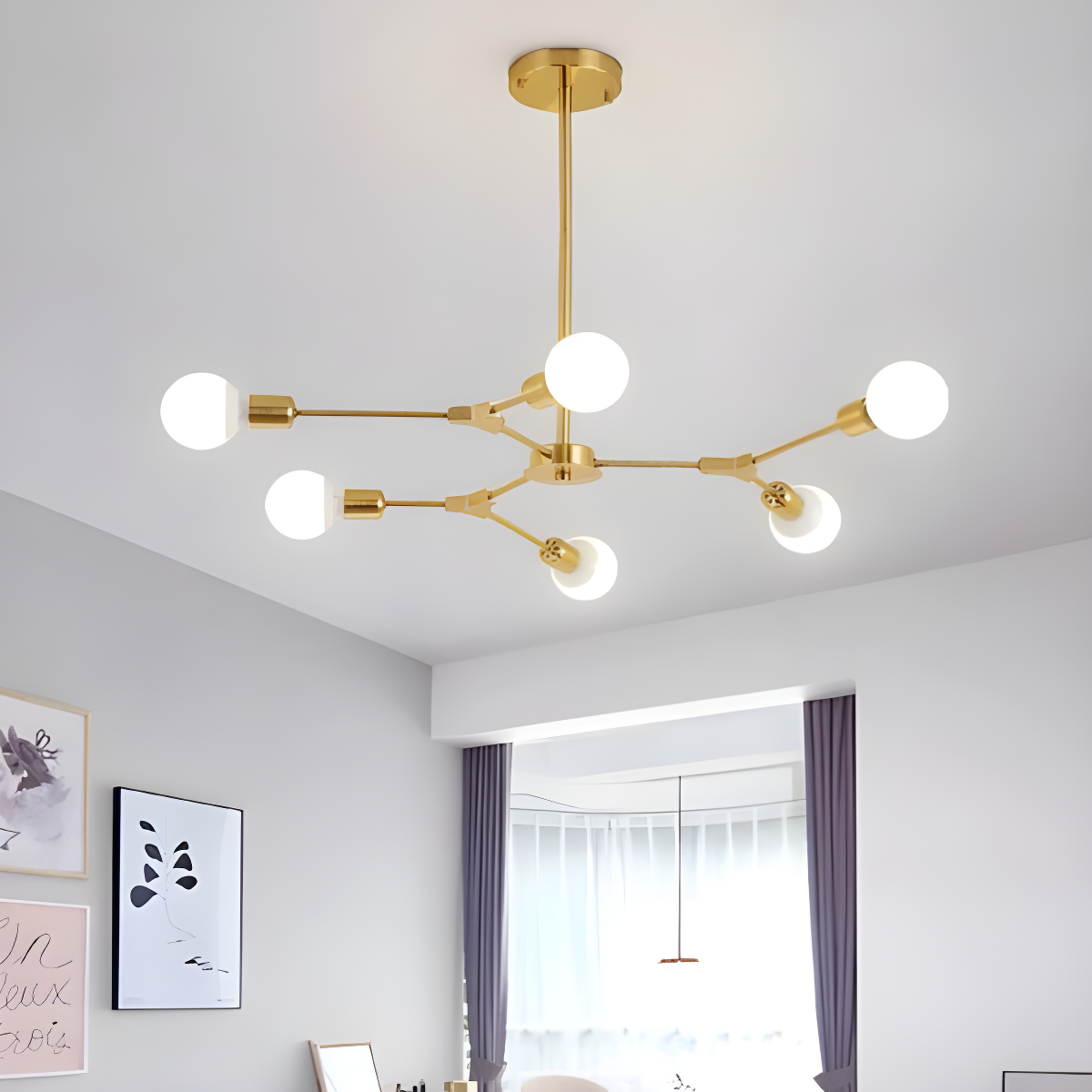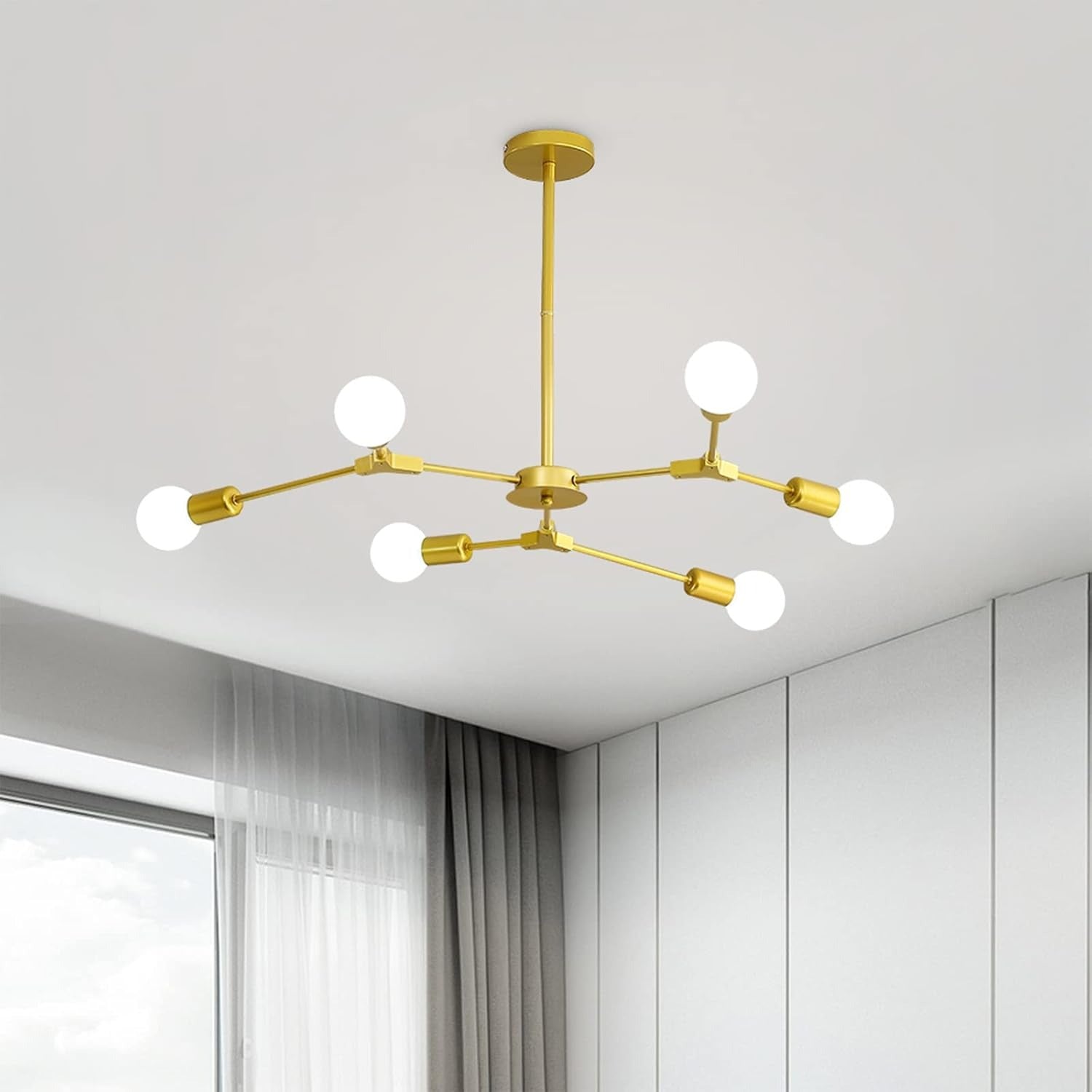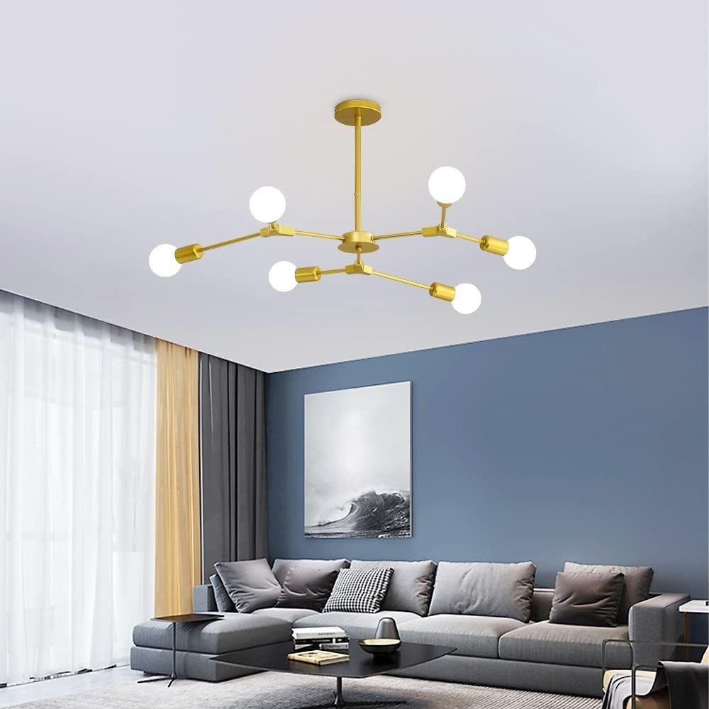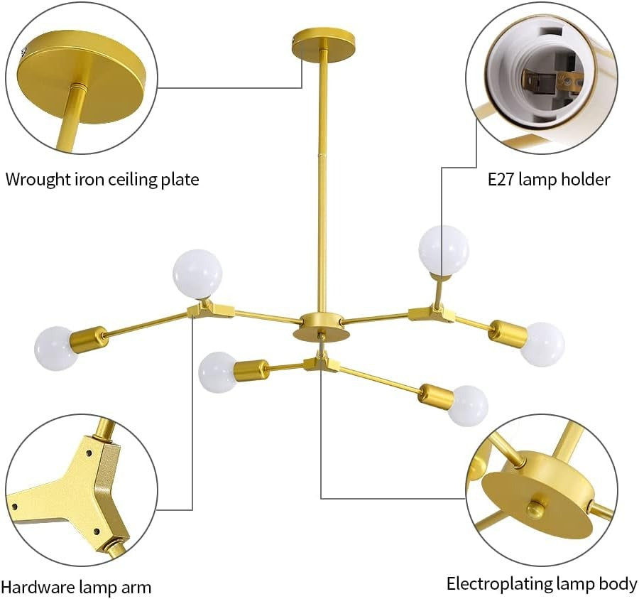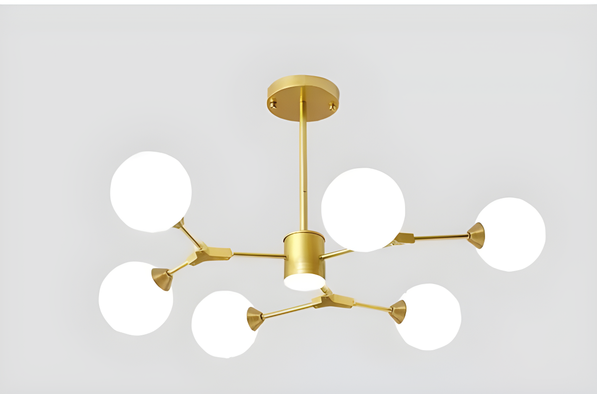 Lustră Modernă, Design Asimetric cu 6 Surse de Iluminare, Auriu/Alb, DM2416/6 – O Alegere Sofisticată pentru Decorul Tău