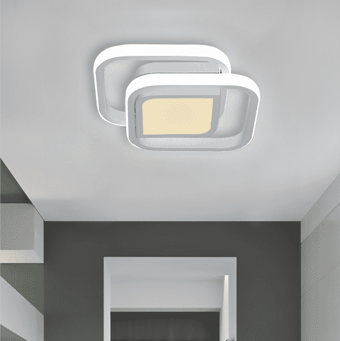 Lustră LED Modernă cu 2 Inele, 27 x 27 x 8H cm, este soluția perfectă pentru iluminatul modern și elegant al unui balcon, coridor sau birou. Această lampă de plafon LED se remarcă prin designul său geometric, format din două forme pătrate suprapuse, care creează un efect de stratificare și profunzime. Pătratul interior, mai mic, se intercalează cu pătratul exterior, oferind un punct focal central pentru iluminat și un impact vizual plăcut.