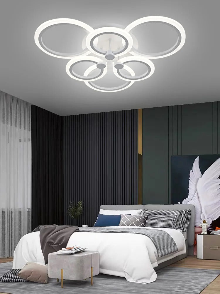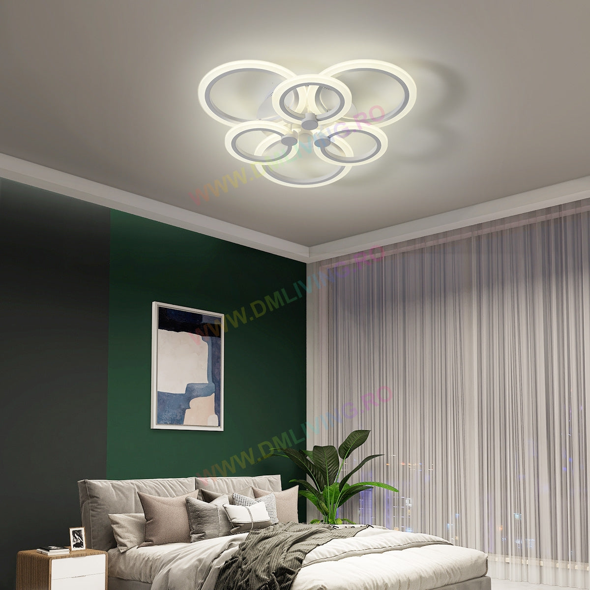 Lustra LED de Lux cu design circular inspirat de floarea de crin adaugă un suflu nou și elegant oricărui dormitor sau spațiu modern. Structura sa albă, compusă din cercuri suprapuse și linii fine, formează un motiv floral abstract ce funcționează atât ca element de iluminat, cât și ca piesă de artă decorativă. Iluminarea LED integrată difuzează o lumină caldă și plăcută, creând o atmosferă liniștită și relaxantă, ideală pentru odihnă sau momente de relaxare. Telecomanda inclusă permite reglarea ușoară a luminii în funcție de preferințe, iar designul său inovator și jocul de lumini o fac alegerea perfectă pentru cei care își doresc un echilibru între funcționalitate și estetică modernă în decorul lor interior. Lustra este perfectă pentru a adăuga un accent deosebit într-o cameră de zi, dormitor sau orice spațiu care necesită o iluminare eficientă și rafinată.