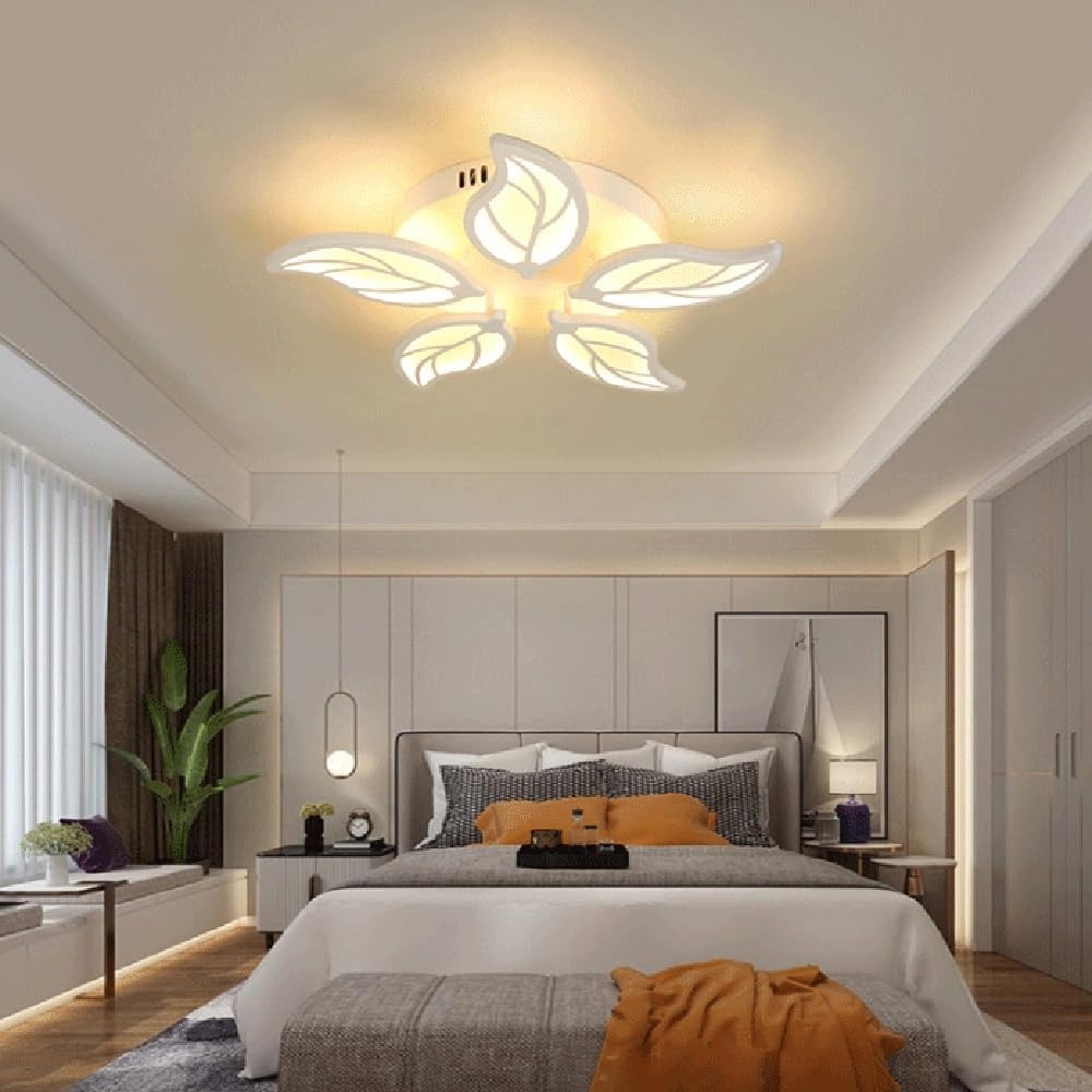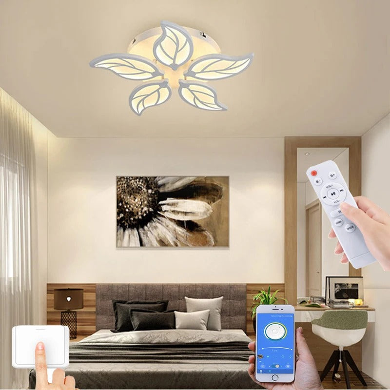 Lustră LED Premium Albă DM007-5 – Design Modern Și Telecomandă, Perfectă Pentru Dormitor Elegant
