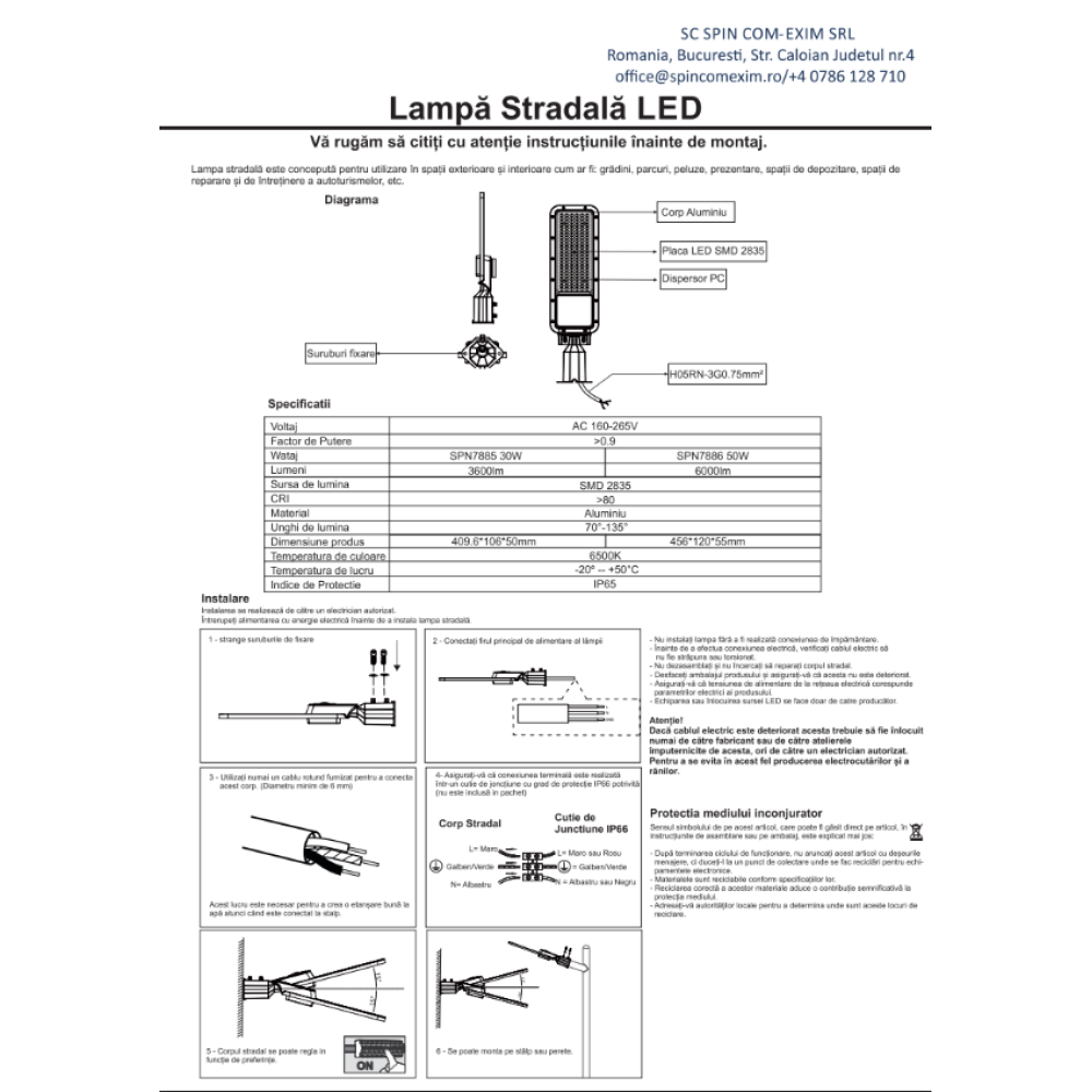 Lampa Stradala cu Led Reglabil 50W/6500K/6000LM
