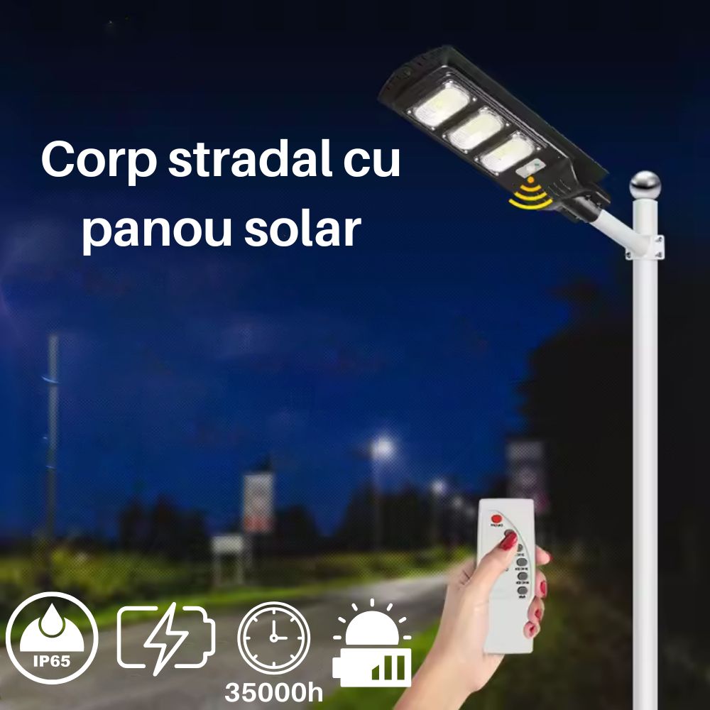Lampa Stradala cu sensor de miscare,panou solar monocristalin integrat si telecomanda - 90W/6500k