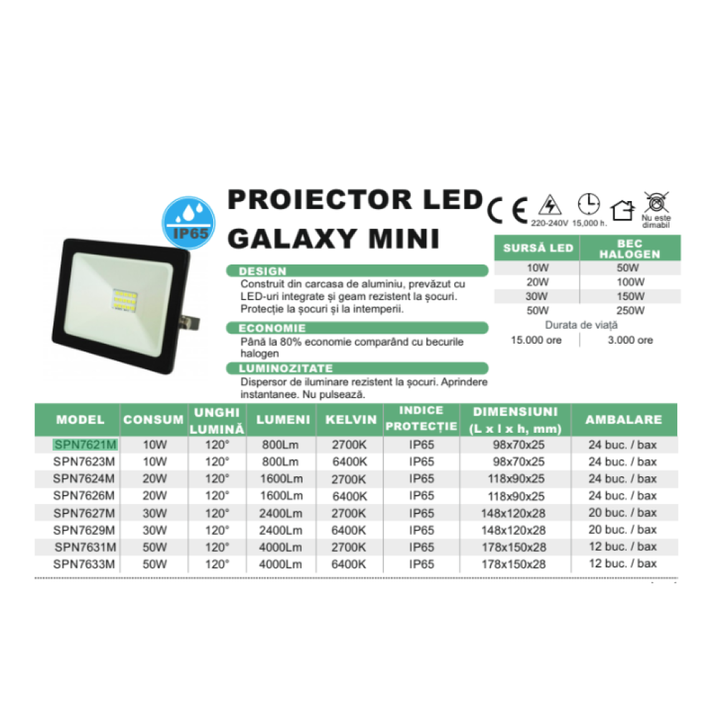 Proiector Led SMD Galaxy, 20W=100W, 6000K, lumina rece