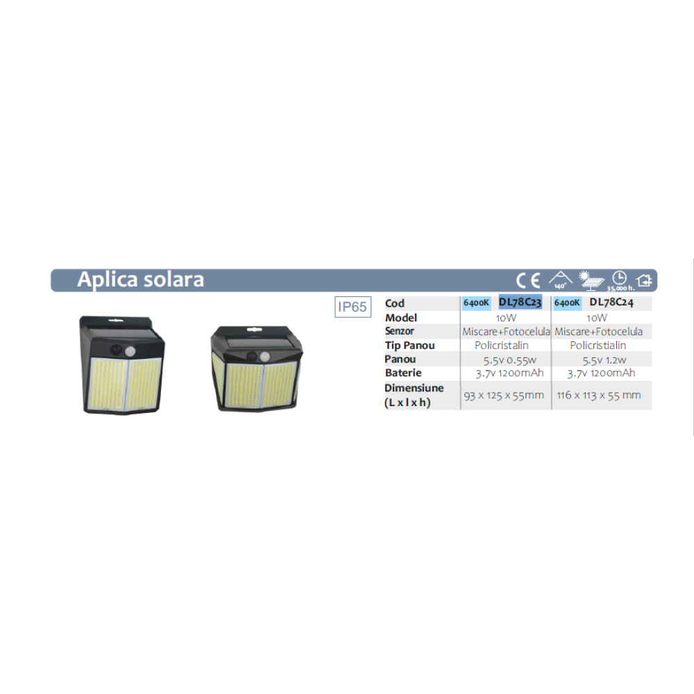 Aplica cu senzor si panou solar 5.5V/0.50W ~10W