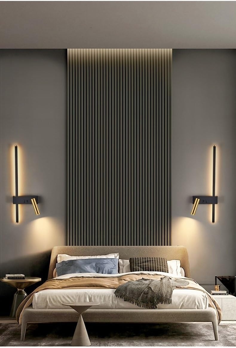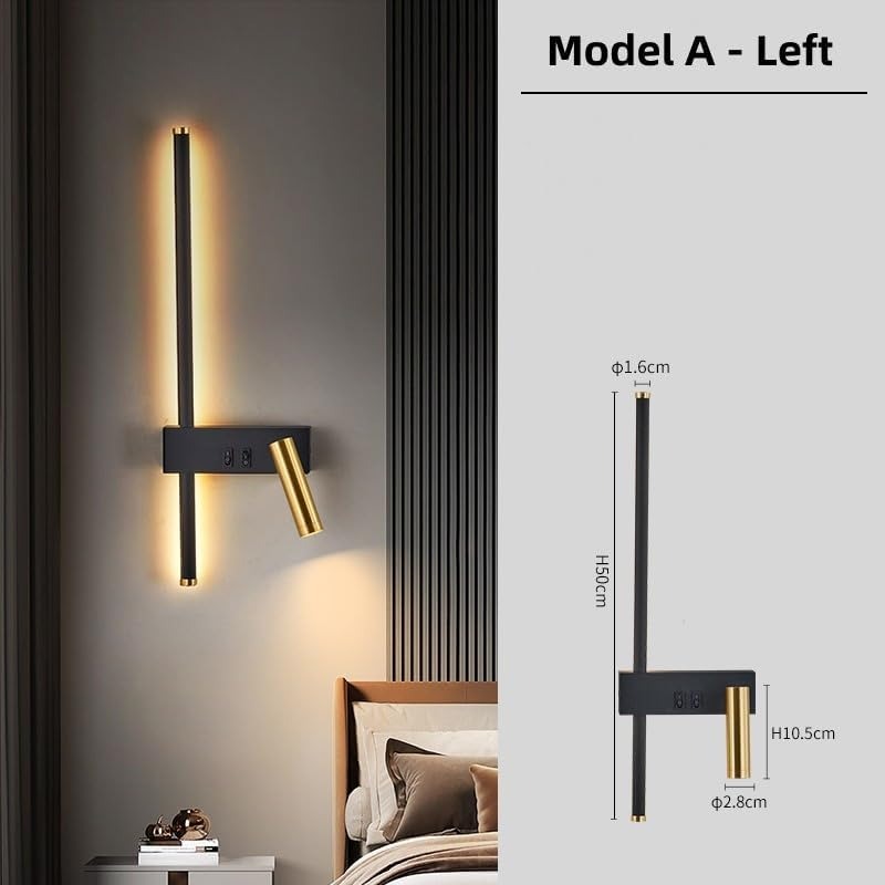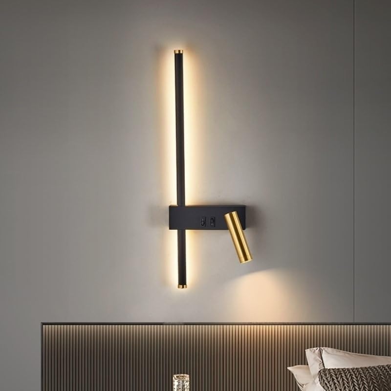 Aplica LED DM781 îmbină perfect designul contemporan cu funcționalitatea, oferind un iluminat elegant și eficient pentru orice spațiu modern. Cu un tub lung de iluminat care se ridică pe verticală, aceasta asigură o lumină uniformă și plăcută, ideală pentru a crea o atmosferă relaxantă și sofisticată. Detaliile aurii adaugă o notă de rafinament, contrastând frumos cu finisajul negru al aplica, ceea ce face ca acest produs să fie o piesă de decor modernă și îndrăzneață. Indiferent dacă este montată în living, dormitor sau pe un hol, această aplica adaugă un accent de eleganță subtilă în orice încăpere.
